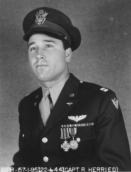Capt Richard S. Herried graduated from Vermillion High School in 1935 and attended the University of South Dakota. He worked as a radio technician.He volunteered for the U.S. Army in Los Angeles, California on 25 March 1942.