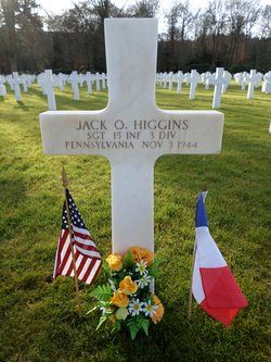 Sgt Jack O. Higgins attended college for three years and worked in the machine shop of the W.R. Case & Sons Cutlery Company, before he enlisted in Erie, Pennsylvania on 31 December 1942.In January 1944, in Italy, he was wounded by artillery shell fragments at his buttock and hip. He was discharged from the hospital in March 1944.