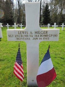 The plane crashed shortly after take-off and while joining up.Sgt Lewis A. Hilger was first buried at Temporary American Military Cemetery Solers, France.