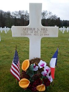 Sgt Arthur S. Hill attended Arsenal Technical High School and was employed at the Allison Division of the General Motors Corporation.He enlisted in Indianapolis, Indiana on 2 October 1943 and was sent overseas on 6 April 1944.