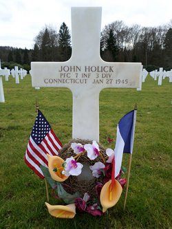 Pfc John Holick was a paymaster employed by the Mutual Rough Hat Company before he enlisted in New Haven, Connecticut on 30 September 1943.He was married to Mary Soyak on 10 May 1941.