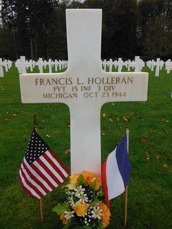 Pvt Francis L. Holleran was a telephone operator, employed by the Michigan Reformatory Institution, before he enlisted on 5 August 1942.He was married to Lucille White on 17 March 1943.