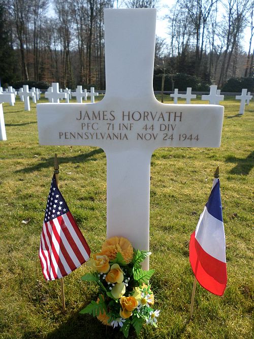 Pfc James Horvath attended Easton High School for four years and was employed by the Ingersoll-Rand Company before he enlisted in Allentown, Pennsylvania on 22 February 1943.He was killed by artillery shell fragments.