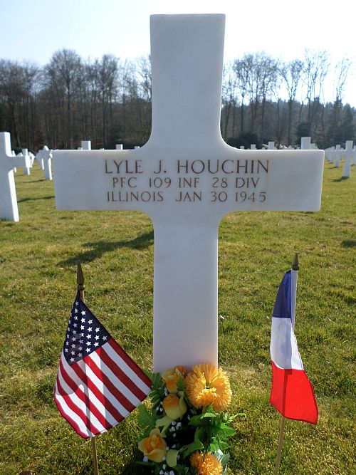 Pfc Lyle J. Houchin worked in a Chicago steel mill a year before he enlisted in March 1944. After training at Little Rock, Arkansas he was sent overseas in August 1944.