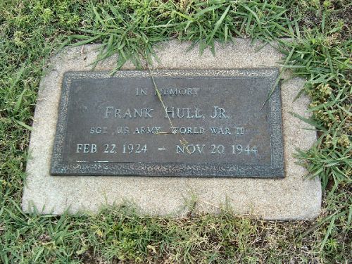 S/Sgt Frank Hull Jr. attended high school for two years and worked on a farm before he enlisted at Camp Croft, South Carolina on 11 March 1943.He was killed by small arms fire in his chest.