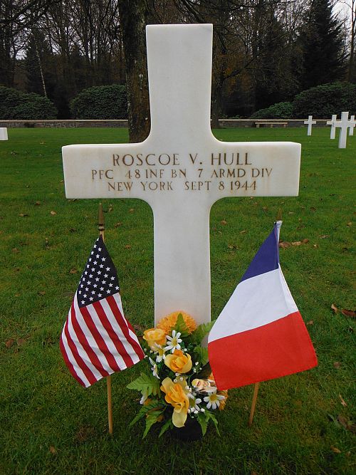 Pfc Roscoe V. Hull enlisted at Fort Niagara, New York on 11 February 1942.Source of information: André Koch, www.abmc.gov, www.wwiimemorial.com, www.archives.gov – WWII Enlistment Record, www.ancestry.com - 1920/1930/1940 Census / Headstone and Interment Record / U.S. WWII Draft Cards Young Men, 1940-1947 / U.S. WWII Hospital Admission Card Files, 1942-1954, https://www.7tharmddiv.org / www.newspapers.com - Press and Sun-Bulletin - 29 September 1944