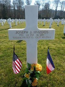 Pfc Joseph J. Hvizdos was a retail manager before he enlisted in Worcester, Massachusetts on 11 March 1941.Source of information: André Koch, www.abmc.gov, www.wwiimemorial.com, www.archives.gov – WWII Enlistment Record, www.ancestry.com, - 1920/1930/1940 Census / Headstone and Interment Records