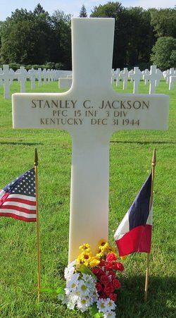 Pfc Stanley C. Jackson worked on the family farm before he enlisted in Cincinnati, Ohio on 15 July 1942.In January 1944, in Italy, he was wounded by a bullet in the fibula. Discharged in April, he was wounded again in May by a bullet in the arm. He was discharged in June 1944.