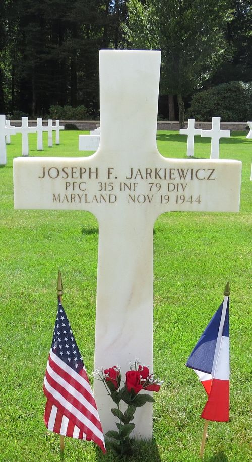 Pfc Joseph F. Jarkiewicz was employed at the American Bitumuis Company before he enlisted in Baltimore, Maryland on 16 June 1942.He was killed by artillery shell fragments in his neck.