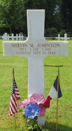 Pvt Melvin M. Johnson attended high school for four years and was employed by the Montgomery Ward & Co. when he enlisted on 10 May 1943.He was killed by small arms fire to the thorax.