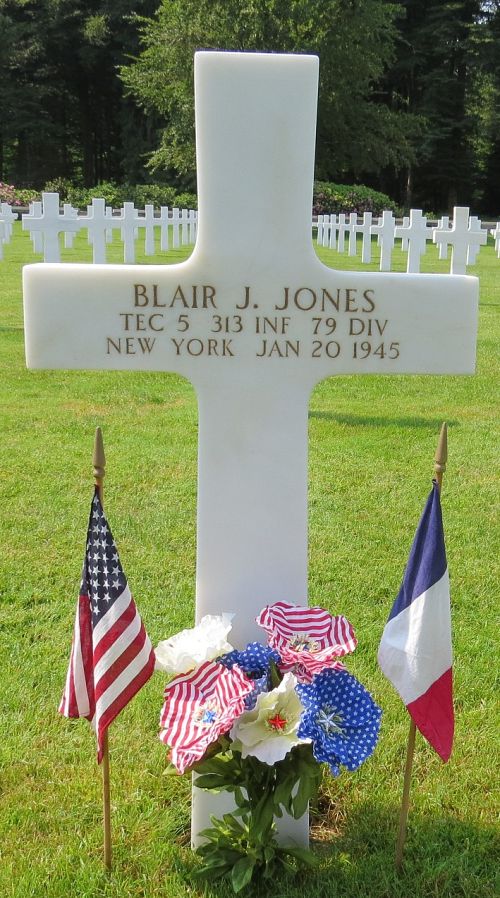T/5 Blair J. Jones attended high school for four years before he volunteered for the Army of the United States in New York City, New York on 20 October 1942.He was killed by artillery shell fragments in his stomach and back.