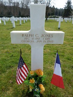 Pfc Ralph C. Jones was a construction worker employed by RFW no2 Construction before he enlisted on 11 July 1942.In May 1944, in Italy, he was wounded in the tigh by artillery shell fragments. He was discharged from the hospital in June 1944. In September, in France, he was wounded again by artillery shell fragments in the neck, face and cranium. He was discharged from the hospital in November 1944.