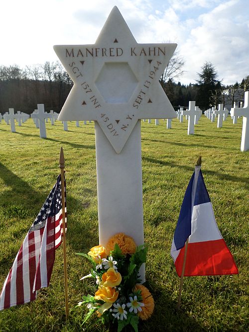 Sgt Manfred Kahn was taken prisoner near Grammont, France and died of his injuries in Germany. Whether he died in a POW camp or in a hospital is not known.Source of information: Peter Schouteten, www.abmc.gov, www.wwiimemorial.com, www.archives.gov - World War II Prisoners of War Data File, www.ancestry.com - Headstone and Interment Record / 1930 Census, http://www.45thdivision.org