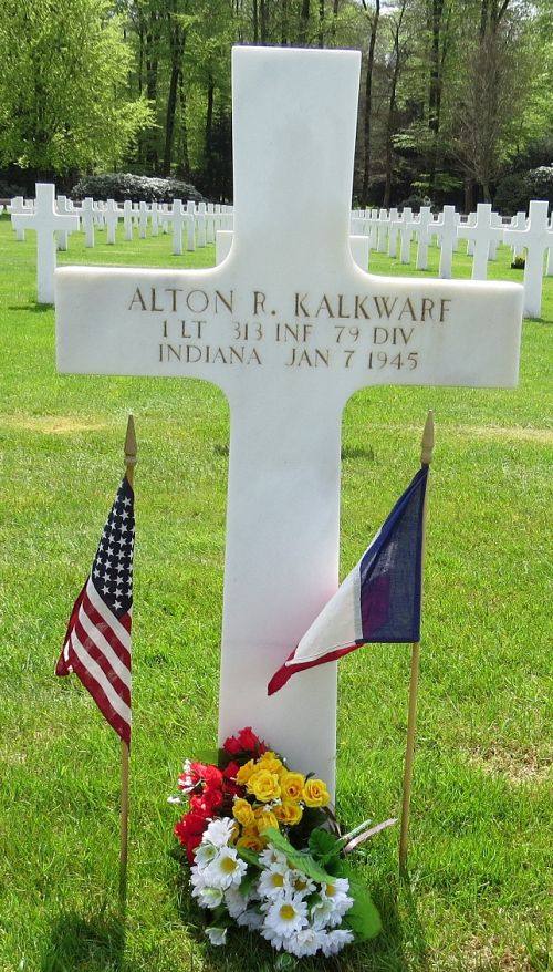 Source of information: Peter Schouteten, www.abmc.gov, www.wwiimemorial.com, www.archives.gov – WWII Enlistment Record, www.ancestry.com - Headstone and Interment Record / SRC Tree / Kalkwarf Tree / 1940 Census, Combat History 79th Infantry Division, www.findagrave.com – MAJ Jimmy Cotton / www.newspapers.com – Evansville Press 11 February 1945