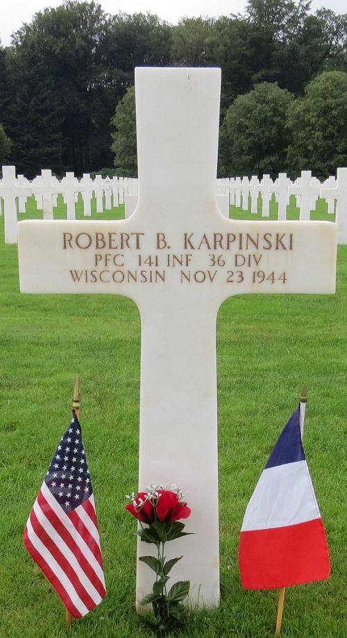 Pfc Robert B. Karpinski enlisted in Milwaukee, Wisconsin on 5 December 1942.Source of information: André Koch, www.abmc.gov, www.wwiimemorial.com, www.archives.gov – WWII Enlistment Record, www.ancestry.com - 1930/1940 Census / Headstone and Interment Records / U.S. WWII Draft Cards Young Men