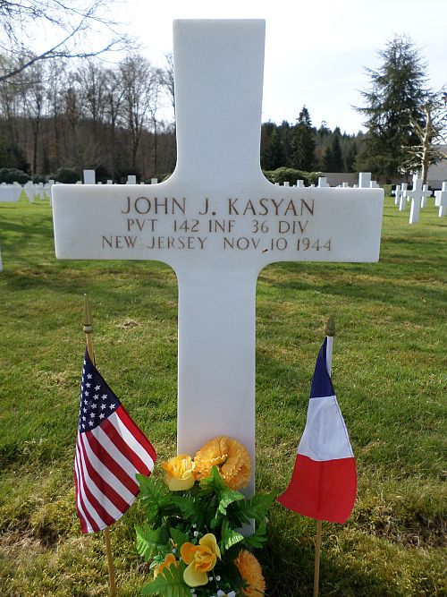 Pvt John J. Kasyan enlisted in Newark, New Jersey on 13 December 1943.Source of information: André Koch, www.abmc.gov, www.wwiimemorial.com, www.archives.gov – WWII Enlistment Record, www.ancestry.com - 1930/1940 Census / Headstone and Interment Records / U.S. WWII Draft Cards Young Men, 1940-1947, New Jersey Birth Index, 36thID-roster-part-2.pdf