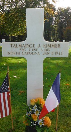 Pfc Talmadge J. Kimmer was a textile production worker.He enlisted at Camp Croft, South Carolina on 21 October 1943.