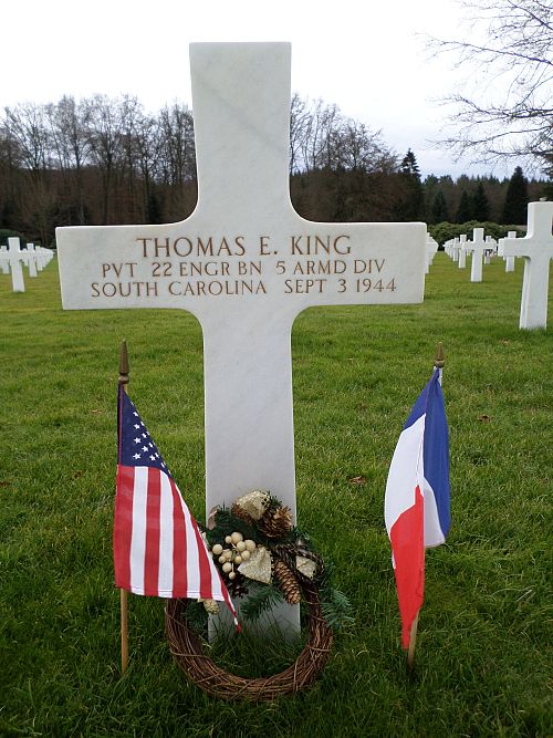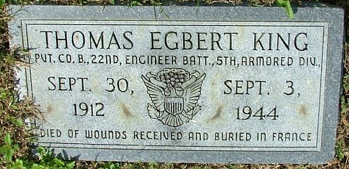 Pvt Thomas E. King enlisted at Fort Jackson, Columbia, South Carolina on 3 March 1942.His brother Durward B. King served with the U.S. Navy. He was reported missing in action on 22 August 1942 when his ship, the USS Ingraham, was lost at sea after a collision with an oiler.