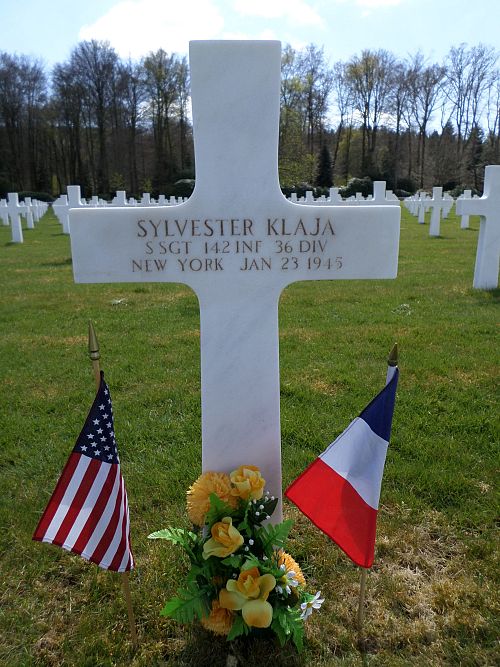 S/Sgt Sylvester Klaja enlisted at Fort Niagara, New York on 4 February 1942.Source of information: André Koch, www.abmc.gov, www.wwiimemorial.com, www.archives.gov – WWII Enlistment Record, www.ancestry.com - 1930/1940 Census / Headstone and Interment Records / U.S. WWII Draft Cards Young Men, https://36th-id.frb.io/, 142ndaar-.pdf / 143rd-October-1944-to-end.pdf, www.strictly-gi.com