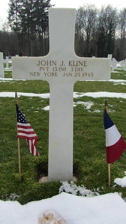 Pvt John J. Kline was raised, after the death of his mother, in the St. Mary’s Boys Orphans Asylum.He was employed by the Temple Theater before he joined the Regular Army in Rochester, New York in 1938. He was sent overseas in February 1943 and saw action in north Africa and Itlay before his unit was sent to France.