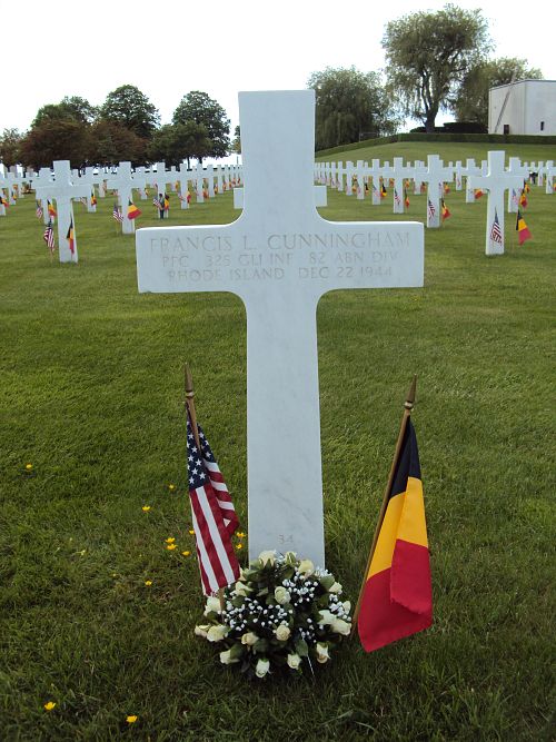 Pfc Francis L. Cunningham enlisted in Providence, Rhode Island on 14 October 1942.Pfc Cunningham was initially buried in a temporary grave at Henri-Chapelle on 25 December 1944. He was disinterred on 21 October 1947 and his remains were prepared and placed in a casket a day later. He was given his final resting place on 9 July 1948.