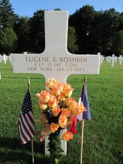 Eugene S. Koshkin attended Ithaca High School and was a student at the Cornell University when he enlisted on 16 October 1942.He was awarded the Silver Star Medal posthumously for his action on the day he was killed.