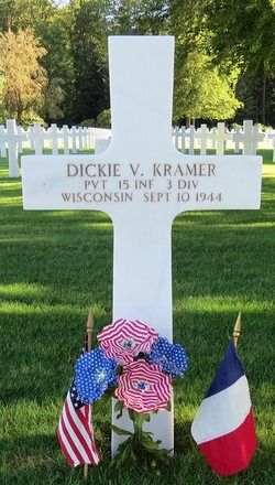 Pvt Dickie V. Kramer was still a high school student when he enlisted on 30 April 1943.Source of information: Leo Minne, www.abmc.gov, www.wwiimemorial.com, www.ancestry.com – 1930/1940 Census / Headstone and Interment Record / U.S. Draft Cards Young Men / US WW2 Hospital Admission Cards, History 3rd Infantry Division WWII, www.findagrave.com
