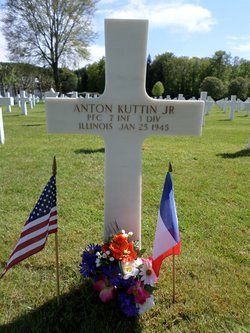 Pfc Anton Kuttin worked on the family farm when he enlisted on 14 April 1943.He was severely wounded in action by artillery shell fragments to his abdomen and died of these wounds on 25 January 1945. The exact date when he was reported wounded and the location where he died is not known.