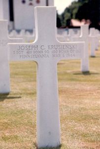 The plane was shot down by an enemy fighter around approximately 1200 hours. Everybody bailed out except S/Sgt Krusienski.S/Sgt Krusienski was initialy buried at the Russian POW Cemetery of Vechta on 9 March 1944.