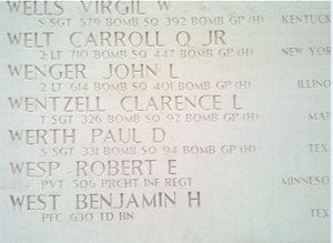 The entire crew of 10 men was killed. Eight of them are remembered at the Walls of the Missing at Margraten; two, Frank J. Zitkovic and Bascom O. Clifton, are remembered at the Walls of the Missing at Cambridge Cemetery.