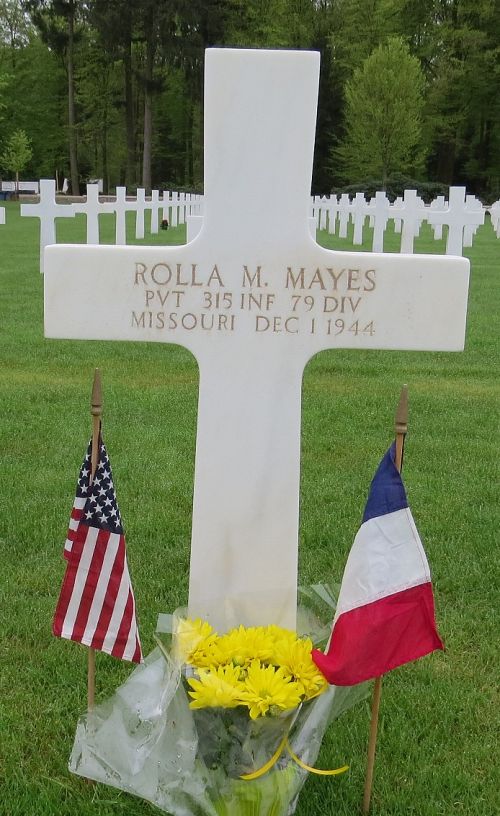 Pvt Rolla M. Mayes was a carpenter before he enlisted at Jefferson Barracks, Missouri on 10 April 1944. He was sent overseas on 10 October 1944.Source of information: Peter Schouteten, www.abmc.gov, www.wwiimemorial.com, www.archives.gov - WWII Enlistment Record, www.ancestry.com - Headstone and Interment Record / U.S. WWII Draft Cards Young Men / Robinson Family Tree, Combat History 79th Infantry Division, www.findagrave.com - Sportsgenie, www.newspapers.com - Mexico Weekly Ledger - 21 December 1944