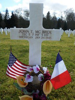 T/5 John T. McBride attended high school for four years and was a spotwelder employed by the United Steel and Wire Company.He enlisted in Kalamazoo, Michigan on 21 April 1943. He was sent overseas in the fall of 1944.