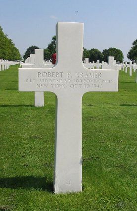 2nd Lt Robert P. Kramer graduated from Fairport High school in 1937 where he played football and basketball. He attended college and was employed at Eastman Kodak Company as a chemist.He volunteered for the Air Corps of the Army of the United States in Rochester, New York on 11 March 1942. On 31 August 1943, Lt Kramer circled his bomber over Fairport and dipped his wings in farewell to his family.