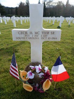 Pvt. Mc Teer was wounded in action by small arms fire to the lung, spine, and trunk in October 1944. The exact date is not known. He died of his wounds 10 October. The location is not known.