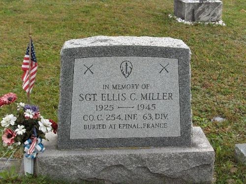 Sgt Ellis C. Miller attended high school for two years and was employed at the United Ice and Coal Company before he enlisted in Harrisburg, Pennsylvania on 3 January 1944. He was sent overseas in November 1944.He died to the effects of artillery shell fragments in his chest and buttock and hip.