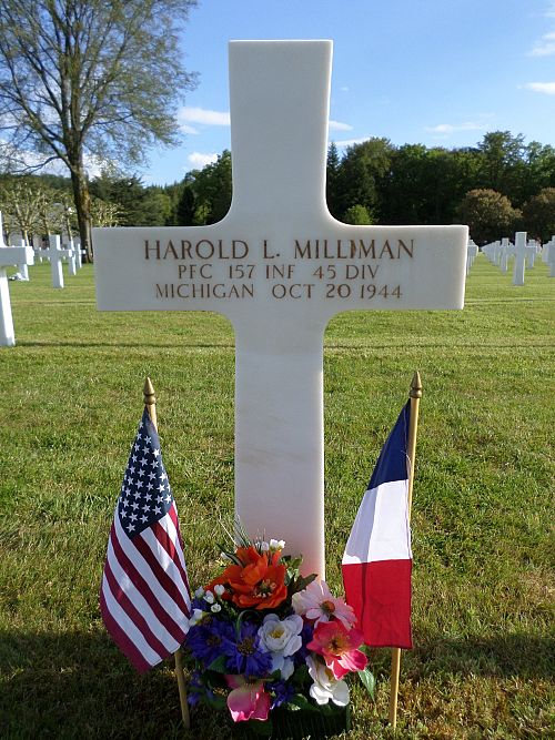 Pfc Harold L. Milliman worked on a farm before he enlisted in Kalamazoo, Michigan on 7 April 1943.Source of information: Peter Schouteten, www.abmc.gov, www.wwiimemorial.com, www.archives.gov – WWII Enlistment Record, www.ancestry.com - Headstone and Interment Record / Milliman Family Tree, http://www.45thdivision.org