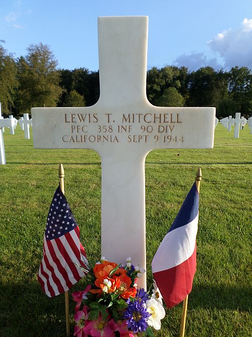 Pfc Lewis T. Mitchell attended high school for 4 years before he enlisted in Los Angeles, California on 16 August 1943.He was first buried at the Temporary American Military Cemetery in Champigneul, France.