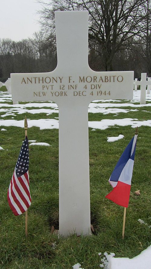 Pvt Anthony F. Morabito was a mechanic and repairman with the Haloid Company in Rochester before he enlisted at Fort Dix, New Jersey on 22 May 1944. He was sent overseas October 1944.He was first buried at the Temporary American Military Cemetery in Margraten, Netherlands.