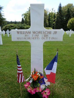 Pfc William Moreschi worked on the family farm before he enlisted in Boston, Massachusetts on 21 April 1941.He was killed by small arms fire to the thorax.
