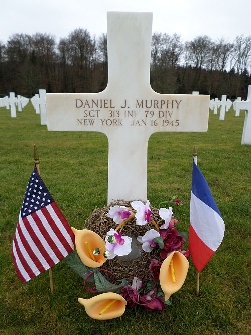 Sgt Daniel J. Murphy attended high school for one year and was employed at the Loft Candy Corporation before he enlisted in New York City, New York on 14 August 1943.He died of wounds, sustained by artillery shell fragments in his thigh.