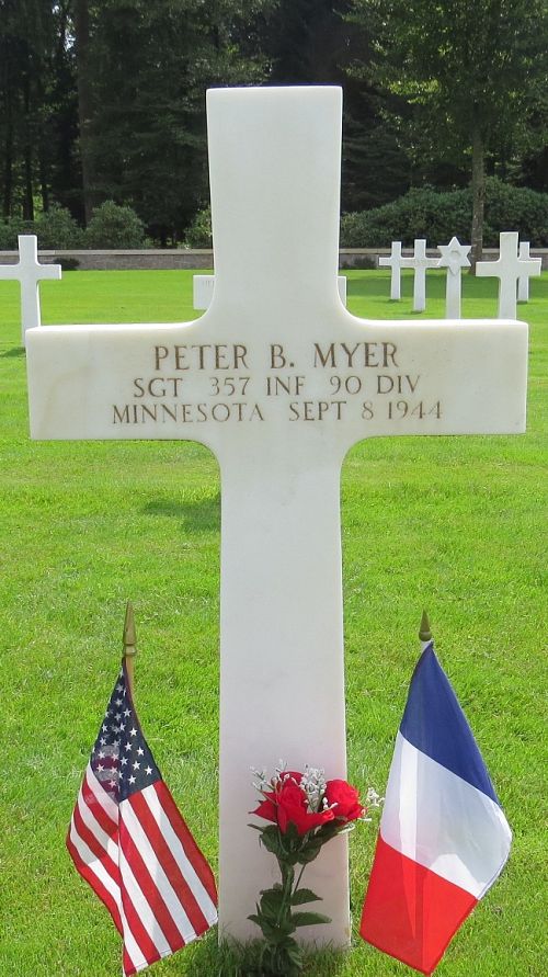 Sgt Peter B. Myer was first buried at the Temporary American Military Cemetery in Champigneul, France.Source of information: Peter Schouteten, www.abmc.gov, www.wwiimemorial.com, www.ancestry.com - Headstone and Interment Record / 1930 Census