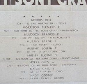 Source of information: Leo Minne, www.abmc.gov, www.wwiimemorial.com, www.ancestry.com - Headstone and Interment Record / 1930/1940 Census / U.S. WWII Draft Cards Young Men / U.S. WWII Hospital Admission Cards / Miville Family Tree, IDPF of George J. Bingham