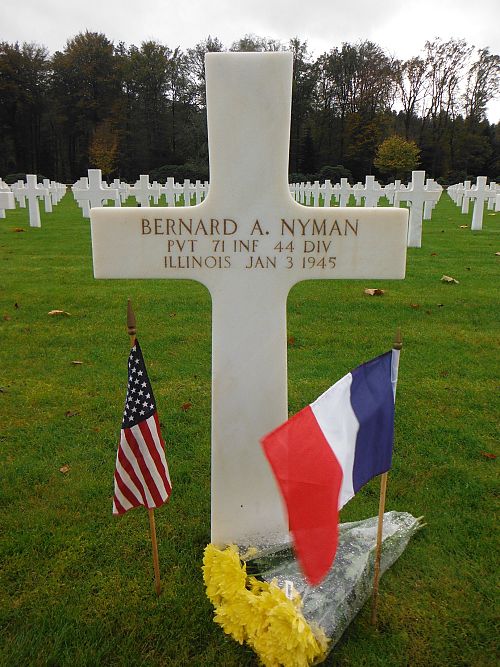 Pvt Bernard A. Nyman graduated from Brodhead High School and worked at the Indiana Steel Company until he enlisted on 12 February 1944. He was sent overseas in October 1944.He was reported wounded in action on 15 December 1944 and died nearly three weeks later.