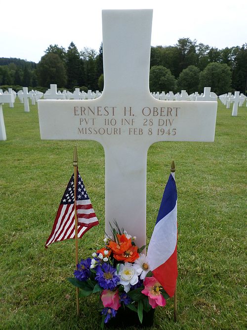 Pvt Ernest H. Obert was an attendant at a filling station and parking lot before he enlisted at Fort Leavenworth, Kansas on 31 December 1943.Source of information: Peter Schouteten, www.abmc.gov, www.wwiimemorial.com – Wilbert H. Kimbriel & Jean Obert Kimbriel, www.archives.gov – WWII Enlistment Record, www.ancestry.com - Headstone and Interment Record / For Peggy Howard and Aunt Dora / 1940 Census, www.findagrave.com