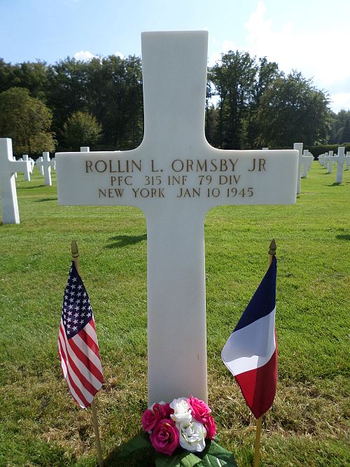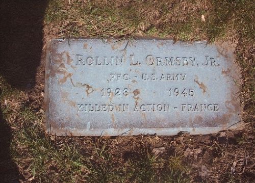 Pfc Rollin L. Ormsby Jr. attended high school for two years and worked on a farm before he enlisted at Fort Dix, New Jersey on 21 April 1944.He is also remembered at the Sunset Hill Cemetery in Lakewood, Chautauqua County, New York.