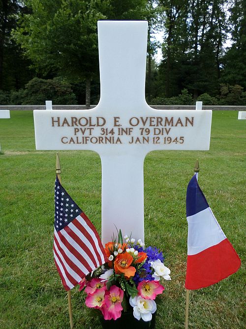 Pvt Harold E. Overman attended high school for four years before he enlisted in Los Angeles, California on 6 August 1943.He was killed by artillery shell fragments.