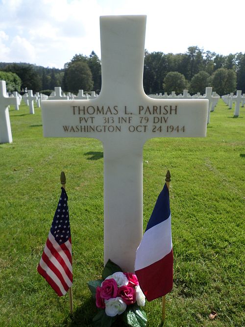 Pvt Thomas L. Parish attended Kaposin high school for one year and was employed at the Seattle Tacoma Shipyards before he enlisted in Seattle, Washington on 9 June 1943.He was killed by artillery shell fragments.