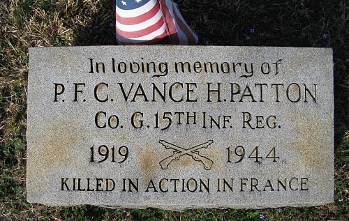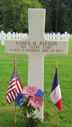 Pfc Vance H. Patton attended high school for one year and was employed by B.V. May knitting goods.He is remembered at Gibsonville City Cemetery in Gibsonville, Guilford County, North Carolina with a memorial marker.