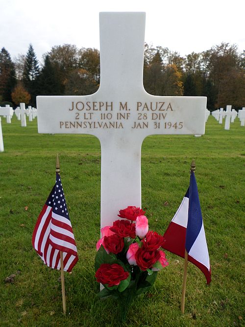 2nd Lt Joseph M. Pauza attended high school for four years and was a shipping and receiving clerk before he enlisted in New Cumberland, Pennsylvania on 28 July 1941. He was sent overseas in July 1944.Source of information: Peter Schouteten, www.abmc.gov, www.wwiimemorial.com, www.archives.gov – WWII Enlistment Record, www.ancestry.com - Headstone and Interment Record / Pennsylvania Veteran Compensation Application Files WWII / 1920/1930 Census, www.findagrave.com, www.newspapers.com – Mount Carmel Item 9 July 1945