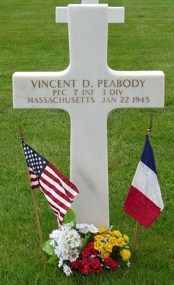 Pfc Vincent D. Peabody was employed by the Martin & Tikeles Company.He enlisted at Fort Devens, Massachusetts on 25 April 1944.